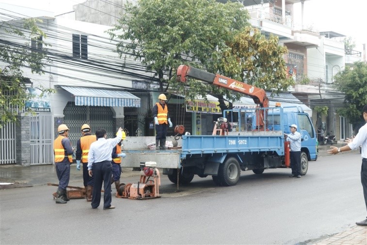 Các học viên đã được đào tạo về lý thuyết và thực hành, sử dụng các máy, thiết bị tại mạng lưới thoát nước trên các tuyến đường nội thành, thành phố Nha Trang.